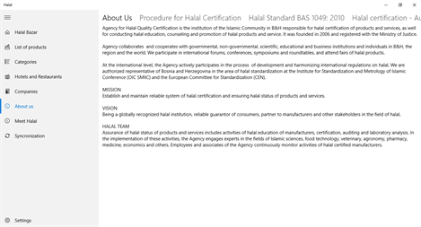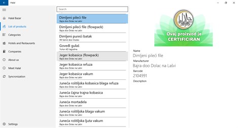 The data-base consist the list of products and services Halal Certified by the Agency for Halal Quality Certification and other halal certification bodies applying same halal certification standards and procedures. Each halal certifier is responsible for validity of data relying on its certification. The Agency for Halal Quality Certification in the regular procedure requires collection of barcodes of each Halal certified product. Thorough post-certification audits and laboratory analyzes the Agency collects additional information and update its data-base of the Halal certified products, and make it available for public on web-page: www.halal.ba. This data-base is completely reliable because of: - Controlling and verification activities, - Very frequent updates, - Barcodes are always stated on every packaging.