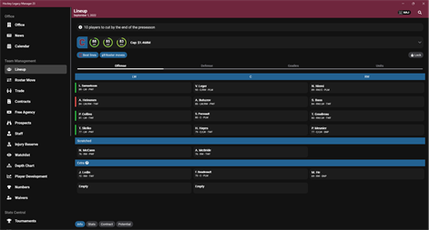 PRESEASON Observe your prospects and manage your lineup cuts before the start of the season