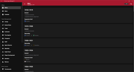 You can even start your career as far as 1917! You have full control over the league's future with the help of expansion drafts!