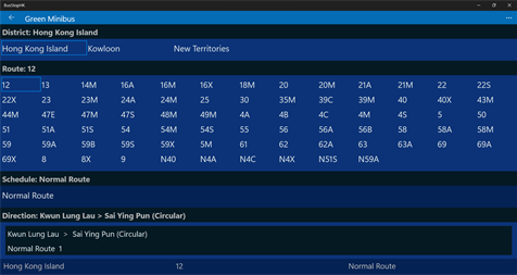 • Hong Kong Citybus, KMB, Long Win, Lantau Bus, bus stop location and route, arrival time. • Search for routes and stations of more than one Transportation at the same time.