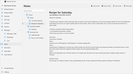 Explore and retrieve lost data from your iTunes backups of your iPhone, iPod Touch or iPad.