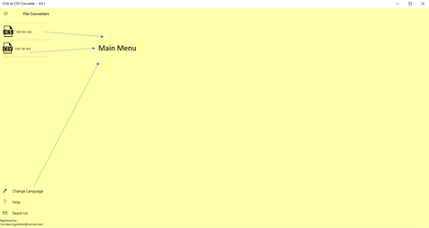 iCAL към CSV Converter е всичко-в-едно инструмент, който частно конвертира вашия ICS (календар) файл в удобен CSV (разделена със запетая стойност) файл ИЛИ прави обратното и конвертира вашия CSV файл в ICS файл. Независимо дали потребителите трябва да извличат събития и графици от ICS файлове или да импортират таблични данни от CSV файлове в календарите си, това приложение осигурява удобно решение и за двата сценария. Нито една от личните ви данни не напуска машината ви. ЗАБЕЛЕЖКА: това приложение поддържа конвертиране на множество файлове. Потребителите могат да обработват партиди от ICS или CSV файлове едновременно, спестявайки време и усилия при работа с голям обем данни. Поддръжката на над 50 езика и лесната помощ и съобщения в приложението го правят това приложение удобно и надеждно за повече от 4 години и повече от 7000 изтегляния през последната година. Това не е свободен софтуер. iCAL към CSV е свободен за изтегляне и, докато пробният период е с отворен край, пробният период преобразува само 10 събития от файл. За разумна, отделна такса за вашия избор на CSV-към-ICS или ICS-към-CSV преобразуване можете напълно да конвертирате всичките си файлове.