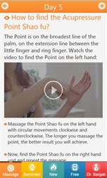 √ Treat Irregular Periods Instantly without Medications using Traditional Chinese Massage Points √ Easily find the right Massage Points with simple Full HD Videoclips and Photos in the App √ Never forget a Massage with a built-in Reminder