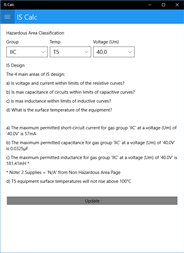 Determine current, capacitive and inductive limits for I.S. circuits. Check safety parameters of field devices and associated apparatus. Calculate maximum cable lengths for I.S. circuits. Useful for CompEx Ex12 Application Design Engineers training course.