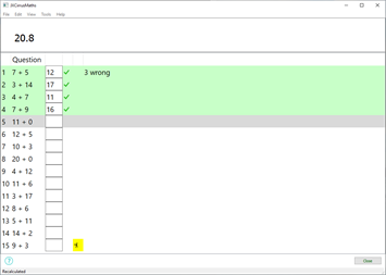 JXCirrus Maths is a maths training application aimed at primary school children. It focuses on basic arithmetic: Times tables, addition, subtraction and division. It will let you set up exercises that are run each day, and then records the best time and lets you race against that.