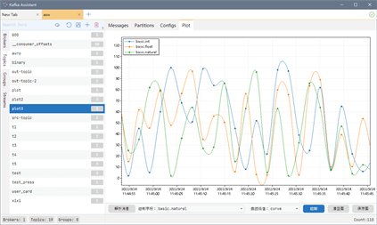 - Status Monitoring: Allows you to monitor Kafka service status in real-time with the help of dashboards and Jolokia brokers. - Generate topology map: Generate topology map with one click for applications that use Streams API to realize streaming processing, and support exporting various formats such as png, svg, pdf, tk, and dot. - Data formatting: Kafka Assistant will automatically recognize and format different data formats, including Text, JSON, AVRO, XML, HEX, MessagePack, and various integer and floating point types. - Drawing graphs: Kafka Assistant keeps historical messages for each topic, and then automatically parses message fields and draws graphs (polyline, quadratic fit, ladder), making data changes over time clear at a glance - Edit configuration: With Kafka Assistant, you can quickly view and update Broker and Topic configurations. The detailed description of each configuration item is built-in, and it is kept in sync with the Kafka official website. - Create a message: When creating a message, you can specify the compression type and ACKs; send messages in batches or use scheduled tasks to send messages regularly. - Add and remove themes and other management features