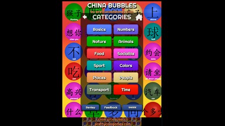 Testimonials(from real users, we don't buy reviews): *****Learnt so much using this app. *****I highly suggest using this to learn chinese *****Clever way to help you learn. *****Its soooo help full thankyou sooo much for this :-) *****This is a really cool app. I learn much better in the game format. Also you have the chance to replay the word as much as you want and to study the characters as long as you wish. Very good and interactive app *****Amazing! Really easy to learn simple chinies You don't have to know Chinese to get started, whether you just want to be able to read a menu or learn hundreds of characters, CHINA BUBBLES will help you!
