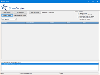 LinenMaster Print Server assigns printer access within the LinenMaster suite of products.