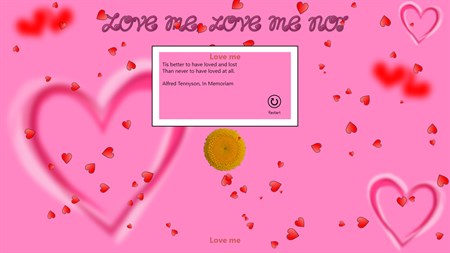 With this simple application we tried to can call up a classical game of summers. I think everybody tried at least once to pick of a flower when walking on a meadow, and with tearing its leaves one by one and thinking of your lover silently murmuring: "Love me." "Love me not." ...