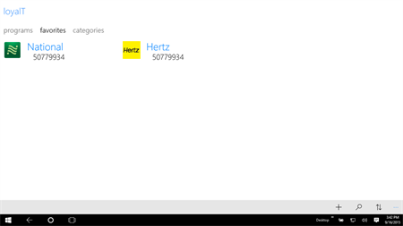 Welcome to the loyalT, the first app to track your rewards programs designed exclusively for Windows 10. Simply enter your program details for all of your rewards programs and have them available at your fingertips, anytime, anywhere. Always updated and always FREE, no exceptions.