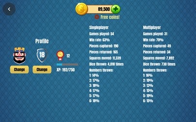 Features: - Dice game with family and friends. - Plenty of avatars for all players. - Different pieces to play with - Piece / token color can be changed. - Auto move system. - Auto throw dice. - Fast animations. - Game statistics with XP and level up system. - Daily bonus and free coins.
