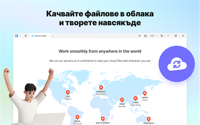 НЕ Е НЕОБХОДИМ ИНТЕРНЕТ Превключвайте по всяко време между облачни и локални документи! Достъпвайте до файлове в облака и си сътрудничете отвсякъде, или просто се откъснете от бързината на екипа и спестете малко трафик.