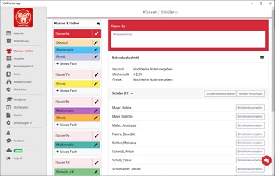 Der digitale Unterrichtsplaner von Maiß vereinfacht Planung und Verwaltung Ihres Schulalltags. Er bietet einen schnellen Überblick mit Terminkalender, individueller Unterrichtsplanung, Stoffverteilung und Schüler- und Notenverwaltung. Sie können Schülerprofile anlegen, Anwesenheit und Fehlzeiten eintragen, Notizen hinterlegen und vieles mehr. Die Lehrer-App ist der intelligente und hochsichere digitale Lehrerkalender mit allen Daten an einem Ort, jederzeit und überall verfügbar. So geht Unterrichtsplanung heute.