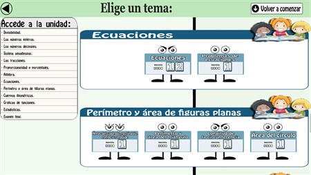 Repasa el temario de MATEMÁTICAS para niños de 13 años con nuestra divertida aplicación, completando el mapa de temas hasta llegar a realizar el examen final.