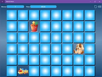 The objective of the game is to find and match all card pairs as quickly as possible. This includes the time and the number of moves. You complete a move when you tap on two separate cards. If the tapped cards match each other they will disappear - otherwise they will flip back. The cards are considered to be a match if they show the same image or if they show a true mathematical equation. For instance, if you are playing the multiplication game and tapped on one card that shows 42 and the other that shows 7 x 6, this will be a match and cards will disappear. The game is over when all cards are matched.