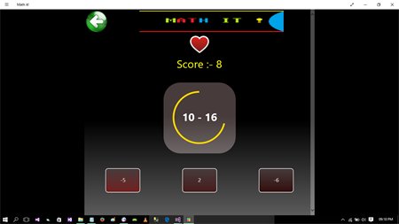 "Math it!" is a logic, math game that can help you train your brain. It is like a test with three answers, you need to choose the right one to get a point. You have to solve this equations quickly, because the time is running out and you can loose a life, careful you have only three. The more points you get the equations get harder. The game is fun and sometimes hard, but thanks to that you can improve your mathematical skills. You can also learn tables from this app by watching and listening to them. SO PRESS THE DOWNLOAD BUTTON AND PLAY THIS BEAUTIFUL GAME.