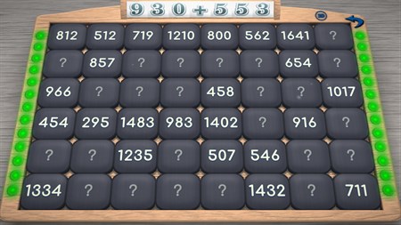 Panel at the top shows the math question. And the playing field consisting of tiles with answers. Do sum. Then find the tile with the right answer.
