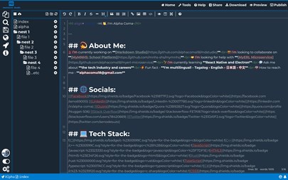 - No Ads or In-App Purchases: Enjoy a clean, ad-free experience. - Multi-Project Dashboard: Easily manage multiple projects at the same time. - Awesome Dark Mode: Write in comfort in low-light conditions. - Integrated Spell Checker: Catch errors in your writing before you publish. - Cross-Platform Installation Support: Use Markdown Studio on Mobile, Desktop, and Web. - Automatic Syntax Highlighting: Easily read and understand your code. - Seamless Auto-save: Never lose your work again. - Extensive View Modes: Edit, preview, split, read, and full-screen your documents. - And SO Much More! Check out the full list of features on our website.