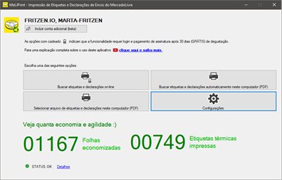 The purpose of this software is to save paper by reducing the number of sheets that are printed, in addition to speeding up the job of printing labels and shipping declarations from MercadoLivre. It has thermal printer support.