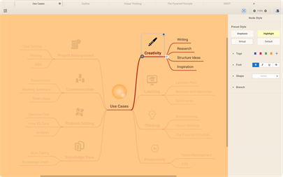 As a mind-mapping tool, MindAtom helps you capture your ideas in fluent experiences.