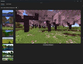 Minepaper is a free utility that will periodically rotate your desktop and lock screen background between an extensive selection of stunningly beautiful Minecraft landscapes. All wallpapers have been taken in-game using various different mods and shaders.