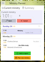 For Jehovah's Witnesses' ministry. Plan your ministry, add it to your calendar and keep track of your ministry time, placed publications, shown videos, return visits. Set and reach your goals for month, week and day. Pioneers will always know how much time they still need to plan for ministry by the end of the month or week. (this is not an official app of Jehovah's Witnesses organization)
