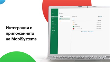 Задълбочено управление на файловете - Съхранение и управление на всеки тип файл. - Хвърлете бърз поглед на последните файлове и друга практична информация с удобната софтуерна добавка за настолен компютър. - Възползвайте се от разширената интеграция на приложенията на MobiSystems за всички платформи. - Преглед и управление на последно използваните файлове (Последни файлове). - Файлова защита до 180 дни - всеки файл, съхраняван в Кошчето, ще бъде там в продължение на 30 дни, преди да бъде премахнат. Това включва достъп до История на версиите на всеки файл до 30 дни назад във времето. (Premium потребителите получават 180 дни защита). - Възможности за работа в движение и споделяне - Междуплатформено синхронизиране на браузърната версия на MobiDrive, както и Android и iOS приложенията. - Споделяне на файлове като прикачен файл или чрез използването на линк за изтегляне.