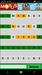 Clone du jeu motus qui passe sur France2, réglez la longueur du mot ainsi que le nombre d'essai qui vous convient. Entrez un mot, les lettres bien placees s'afficheront en vert alors que celles qui ne sont pas à leur place sont affichées en orange, a vous de trouver le mot mystere a force de deduction et perspicacite. C est un mastermind avec des mots.