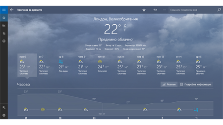 MSN Време: Най-добрият начин да планирате деня си. Научете последните метеорологични условия, независимо дали сте на планина, на плаж или просто проверявате прогнозата. Вижте точни 10-дневни и почасови прогнози, каквото и да правите.