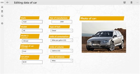 Would you like to know how much you spend on your car? You want to control your expenses and see all the statistics of refills, services and other expenses? Then this app is for you. You only need to enter data about fueling, services or any other costs and application will calculate results and show statistics in various forms, in various categories and for different periods of time. And for added convenience, all data will be available on all your devices running Windows 10 and Windows 10 Mobile.