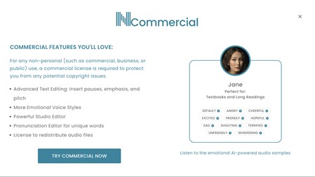 limitations of trial features: 1. Free users can sample the Premium Voices for 20 minutes per day and 2. Plus Voices for 5 minutes per day. Or use any available Free Voices unlimitedly.