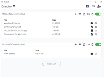 Transfer files and folders (remotely or locally) in just a few clicks. You don't have to copy your files to a server on the Internet, external hard drive, or USB to transfer your files. Instead, with OneLink, your files and folders are streamed directly from the OneLink app to a web-page in the browser, accessible from anywhere through a generated link.