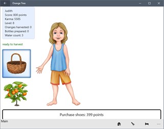 Choose a character, give water to the orange tree every day, harvest oranges, sell and earn money. Buy cool stuff for your house with money.