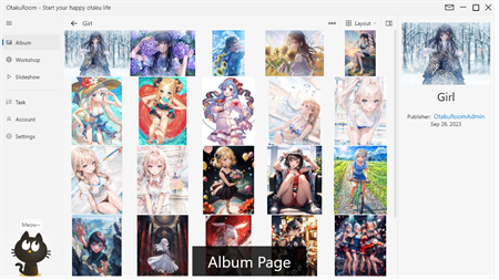 OtakuRoom is a software for creating and sharing albums. It is free and Ads-free. Using distributed encryption technology to protect user privacy, no resource server is required, and resources can be shared anonymously without review.
