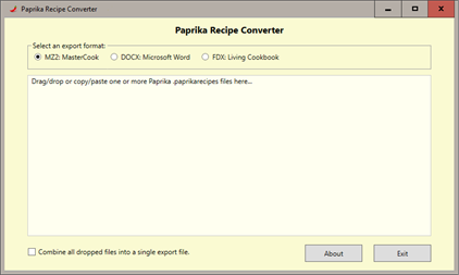 Check the option box if you want to combine all your dropped files into a single export. This is very convenient if you're processing many individual files and you want to import them all at once into other recipe software.