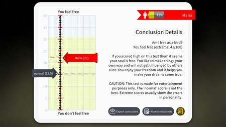 It has a series of tests which you have to go throw to achieve your personal score. These tests are very innovative and are created in a light funny way such that nothing gets too serious or boring. Once you finish the test you will get the score card of your analysis.