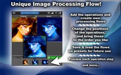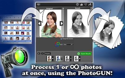 The Secret Weapon for Your Photo Processing Needs! Many of us have to deal with converting tons of photos to different formats, renaming them or applying operations like Flipping, Mirror,Grayscale over and over. It is not much fun if you have to do all those operations individually for each photo. PhotoGunLite can reduce this process from hours of work to just a few simple clicks. You can perform the following operations: - Add professional touches to your photos and apply “Vignetting”, a creative effect, to draw attention to the center of the frame; - Blur to hide some of the details of your photos (different levels of blurring available); - Invert the photos; - Flip the image vertically and horizontally; - Swap the RGB-channels; - Convert color images into black-and-white ones; - Change the order of the operations to achieve the best results; - Save the operation-flows as presets that you will use over and over again; - Preview all images at each stage of the applied operations by clicking the eye symbol on the flow thumbnails, in real time and with retina-ready graphics; - Give new names to your photos; - Convert photos from/into all key formats, such as: a) JPEG: Join Photographic Experts Group, any quality compression level ranging from 1% to 100% b) PNG: Portable Network Graphics, c) BMP: Windows Bitmap, d) TIFF: Tagged Image File Format, e) XMP: X PixMap, f) PPM: Portable Pixmap.