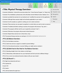 The Physical Therapy Exercises app is a special purpose text-to-speech and speech recognition computer program for aiding in the application of rehabilitation exercises.