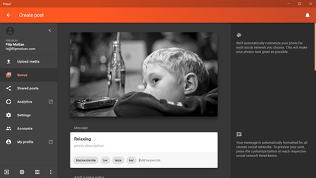 WHY YOU’LL LOVE PIXBUF * Share your photos to multiple services from one place. * Add metadata to your photo just once, we’ll use it for all services. * Get analytics for each photo you share: Clicks, Retweets, Repins, Likes, Shares and more. * Schedule your posts automatically so you never have to worry about setting a time and date. * Share your images from your phone or desktop, Pixbuf is available for all major platforms.