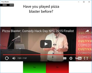 Comedy Hackathon Finalist Pizza Blaster, now on Xbox... The famous game you can only play once. And when you are ready you can download the App on the Windows App Store Windows PC, Windows Phone, Xbox One, Hololens, and Surface Hub.
