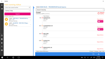1.PNR status 2.Food on train 3.Train ticket booking 4.Bus ticket booking 5.PNR confirmation prediction 6.Live train running status based on real time GPS data 7.Seat Availability on any train route 8.Live arrival/departure information at any station 9.Trains between stations 10.Coach & platform information for your train 11. RailMall - India's No. 1 Travel Market Now, you can book delicious meal on your train berth through RailYatri app. We've partnered with handpicked restaurants across India to serve you hygienic and tasty food on your train seat. This app relies on scientific data driven models based on historic trends & data points shared with us by millions of commuters. We believe in simplifying train travel for passengers with our proprietary data driven algorithms & predictive analysis.