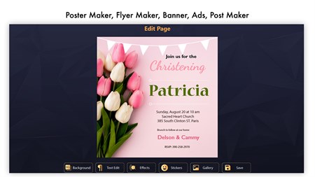 Typography - Add customized text on the background with several font style options to add creative texts, scale and resize to set it anywhere on the layout.