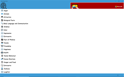 Psychology Facts app has a collection of over 1000 miscellaneous facts on psychology, animal facts, and other interesting information. The app breaks the facts into some 33 categories, which include some of the following: Anger, Animals, Attraction, Biological Facts, Body Language and Communication, Children, Color, Teenagers, and many others.