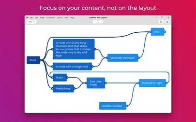 Create flowcharts (and mind maps) without worrying about layout with QuikFlow. With our innovative interactive layout algorithms, you can work as if you were using a mind mapping application while creating flowcharts. Define your structure and the app handles the layout!