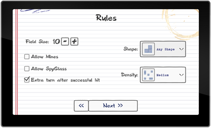 You can play with AI using highly configurable game rules, or play with your friend online. You can choose: — Your game field size — Straight ships or any shape — Different arrangement densities — Decide to use or not to use mines or a spyglass — Decide to allow an extra turn after a successful hit — You can arrange your ships and mines manually, or let computer to arrange game field for you randomly — You can choose between multiple game skins (or looks): it's up to you!