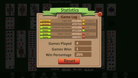 Simple FreeCell is just like the FreeCell that used to come with all Windows computers. It comes with 4 different game modes for you to try (Classic FreeCell, Baker's Game, Eight Off, and Two Deck FreeCell). Simple FreeCell even logs your previous games so you can go back and improve your win percentage. With large card backs and easy controls, this game is great for all ages and experience levels.