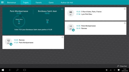 Vous voyagez avec SNCF régulièrement ou de manière occasionnelle ? Téléchargez la nouvelle application SNCF et découvrez ses fonctionnalités qui vous accompagnent dans votre mobilité : • recherchez un itinéraire depuis ou vers une gare ou une adresse et enregistrez les pour recevoir des notifications personnalisées en temps réel (horaires de vos trains, voies de départ et d’arrivée, perturbations et travaux éventuels) • géolocalisez-vous pour trouver facilement les gares autour de vous ou pour rechercher un itinéraire depuis votre position • consultez les tableaux des départs et des arrivées de la gare de votre choix • importez vos billets (e-billets(1) ou billets papier) afin de bénéficier d’un accompagnement jusqu’à votre train (calcul de votre itinéraire et du temps restant avant le départ, informations sur les quais de départ, sur vos places) • importez votre carte de fidélité SNCF pour retrouver automatiquement l’ensemble de vos trajets, et recevoir ainsi toutes vos informations pratiques de voyage • enregistrez vos trajets habituels pour obtenir en un clin d’œil vos horaires temps réel et vous organiser au quotidien Avec votre application SNCF, obtenez des informations sur plus de 5 400 gares et stations en France et 150 dans le reste de l’Europe. TGV, TER, Transilien, Intercités, Eurostar et Thalys : valable pour tous les trains et autocars (2) opérés par le groupe SNCF et ses partenaires, l’application SNCF facilite vos voyages en Île-de-France, en régions, en France et en Europe.