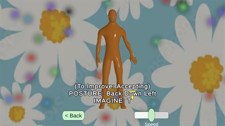 A healthy exercise and awareness routine. Imagine letters, numbers, and shapes around your body and point to them. The symbols are a spiritual message.