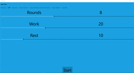 You can set the amount of rounds in the circuit as well as the duration of rest and exercise.