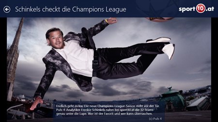 Was im Sport wirklich zählt. Die sport10.at-App bietet Ihnen laufend aktualisierte exklusive Geschichten, Interviews und Diashows auf Ihrem Windows 8 Device. Neben einem Überblick über die neuesten Storys aus der Welt des Sports können Sie die aktuellsten News von sport10.at gezielt in den jeweiligen Ressorts - von Fußball über Formel 1 bis hin zu Wintersport – ansteuern. Unter dem Menüpunkt Multimedia finden Sie die neuesten und besten Diashows.